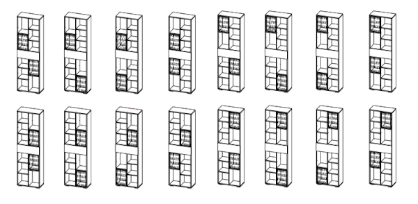 - 8 вариантов исполнения навесной полки ПН-001 и 16 вариантов исполнения стеллажа СЖ-001