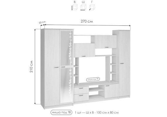 Ширина ниши для ТВ - см | 110 |
